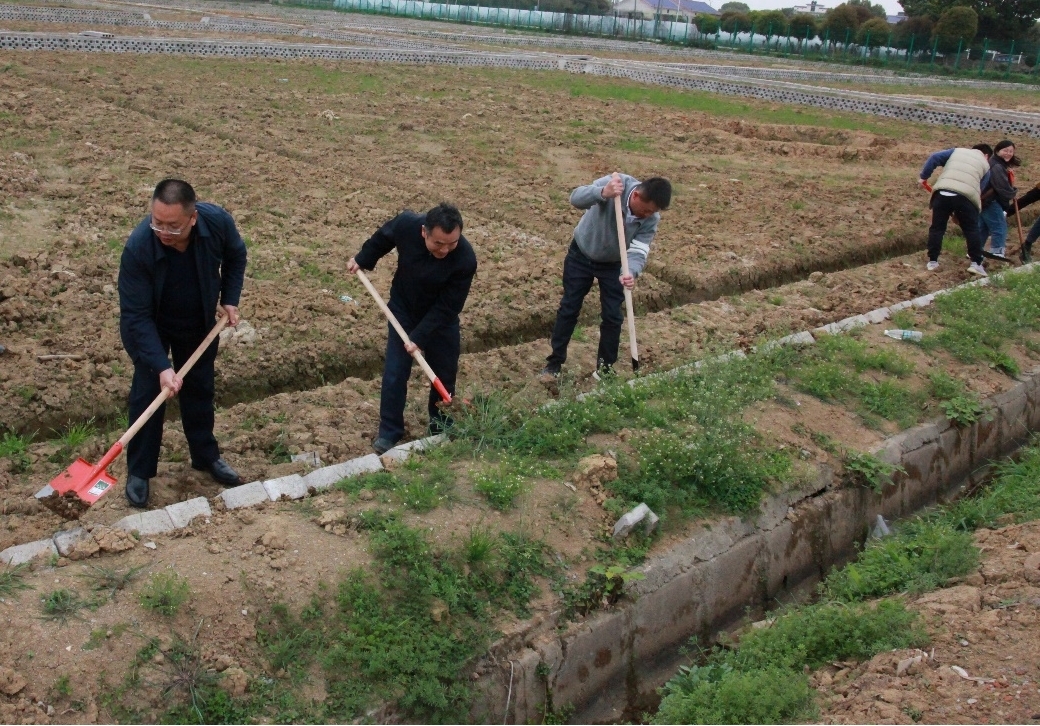 在学习讨论后,刘少军院士和谢罗庚书记带头抡起了农具,走到了稻鱼综合种养实验田间,将“论文写在大地上”落到实践中,带领大家对稻鱼综合池田生态坡进行前期平整工作。在耕作间,覃钦博教授总结了近期和刘少军院士一起对省内外稻鱼综合种养的调研情况,畅谈生态种养新模式的发展前景。师生们井然有序,边学边干,完成了多块大实验田的生态坡平整工作。对于很多员工来讲,这都是第一次下田,锄头抡久了,手有点酸痛。刘少军院士安慰和鼓励大家说:“大家要多来锻炼,锻炼多了就不痛了。我们要常来这里调研实践,开动脑筋,创新创建生态养殖模式,要把论文写在大地上”。师生们“人心齐、干劲足、执行强”的风貌在春日的田间谱画出了一道美丽的风景。