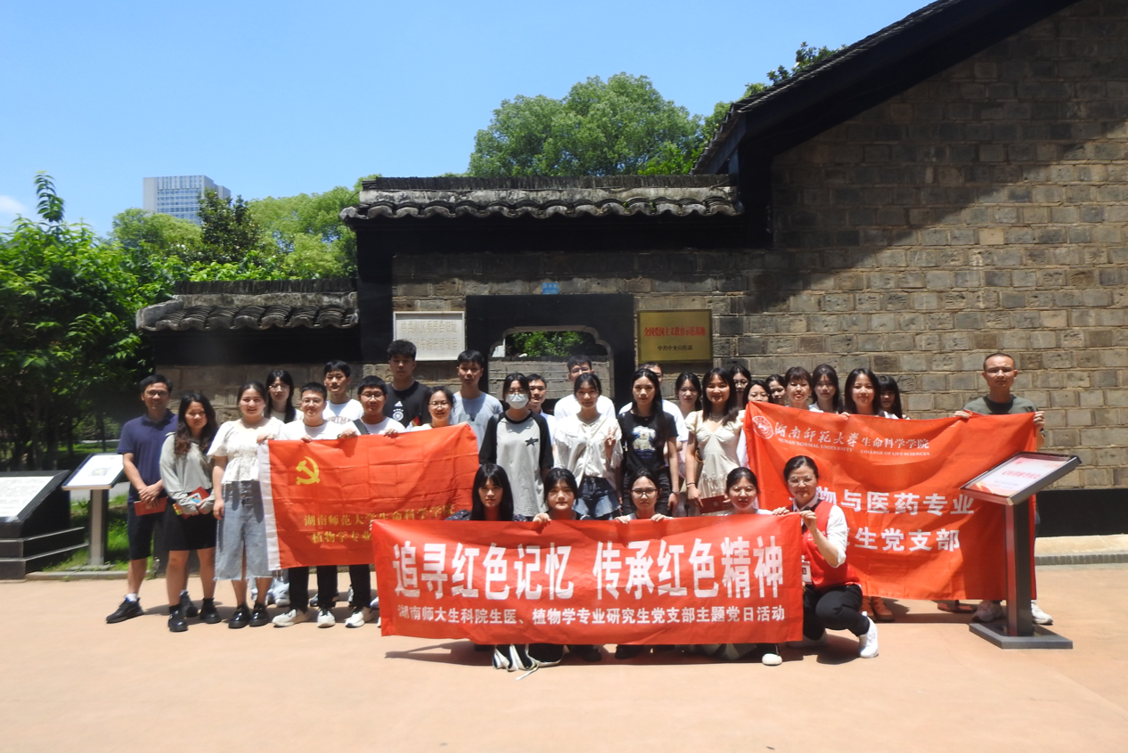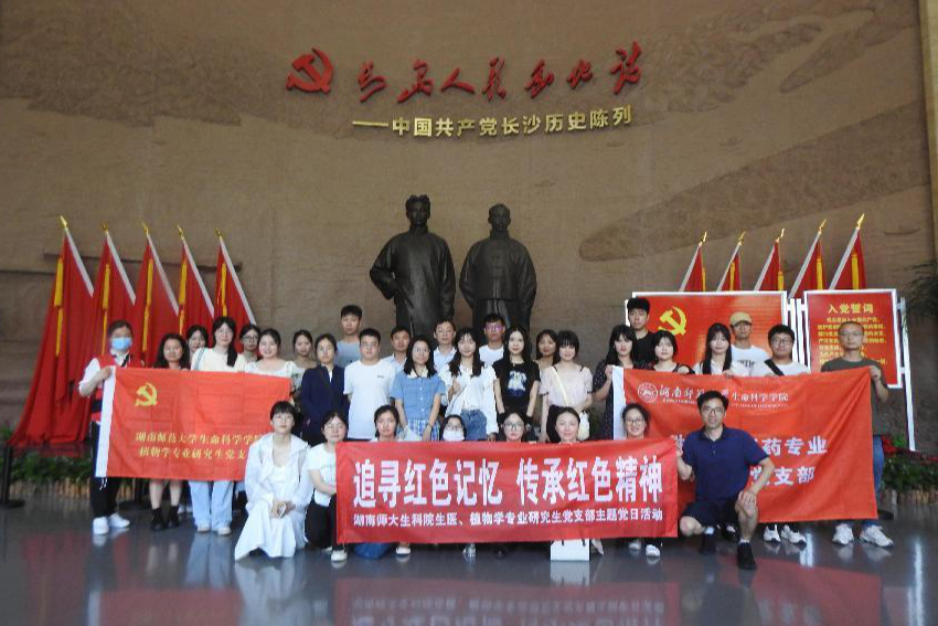为进一步增强党员思想意识,深入了解、学习党的历史,2023年5月25日生物与医药、植物学专业研究生党支部赴中国共产党长沙历史馆开展“追寻红色记忆,传承红色精神”主题党日活动,生物与医药专业研究生党支部第一书记周熙老师、党支部书记任慧、植物学专业研究生党支部书记匡雪梅和两个支部的党员以及发展对象参与此次活动。