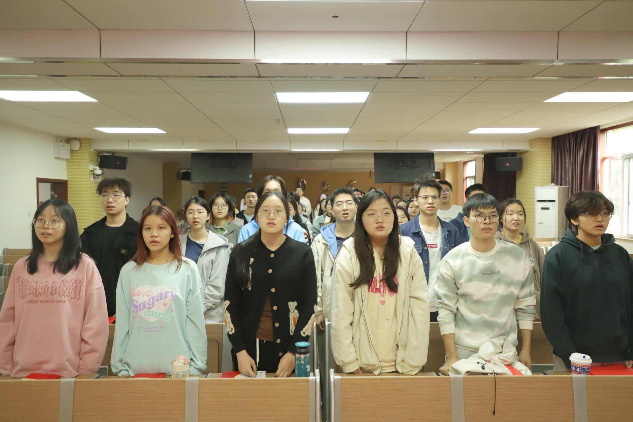 仪式第一项,奏唱《国际歌》。雄浑激昂的旋律在会场回荡,激发起每一位入党积极分子心中对共产主义事业的崇敬与向往。