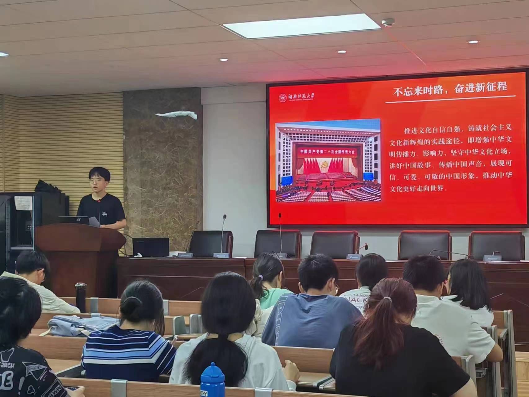 宣讲过程中,三位主讲人结合自身经验,分别从不同的方面对党的二十大精神进行解读分享。黄芷舟从自己的家乡百色说起,从父辈说起,列出数年来百色的变迁,并结合党的二十大报告,向大家分享了党的二十大精神。顾轩宇,分别从“回望来路”、“立足当下”、“展望未来”三个方面,结合自己的大学经历,细数身边榜样,向大家分享了党的二十大精神。何云帆,从学习说起,由自身入题,联合科学研究,向大家分享了她在师大的故事。