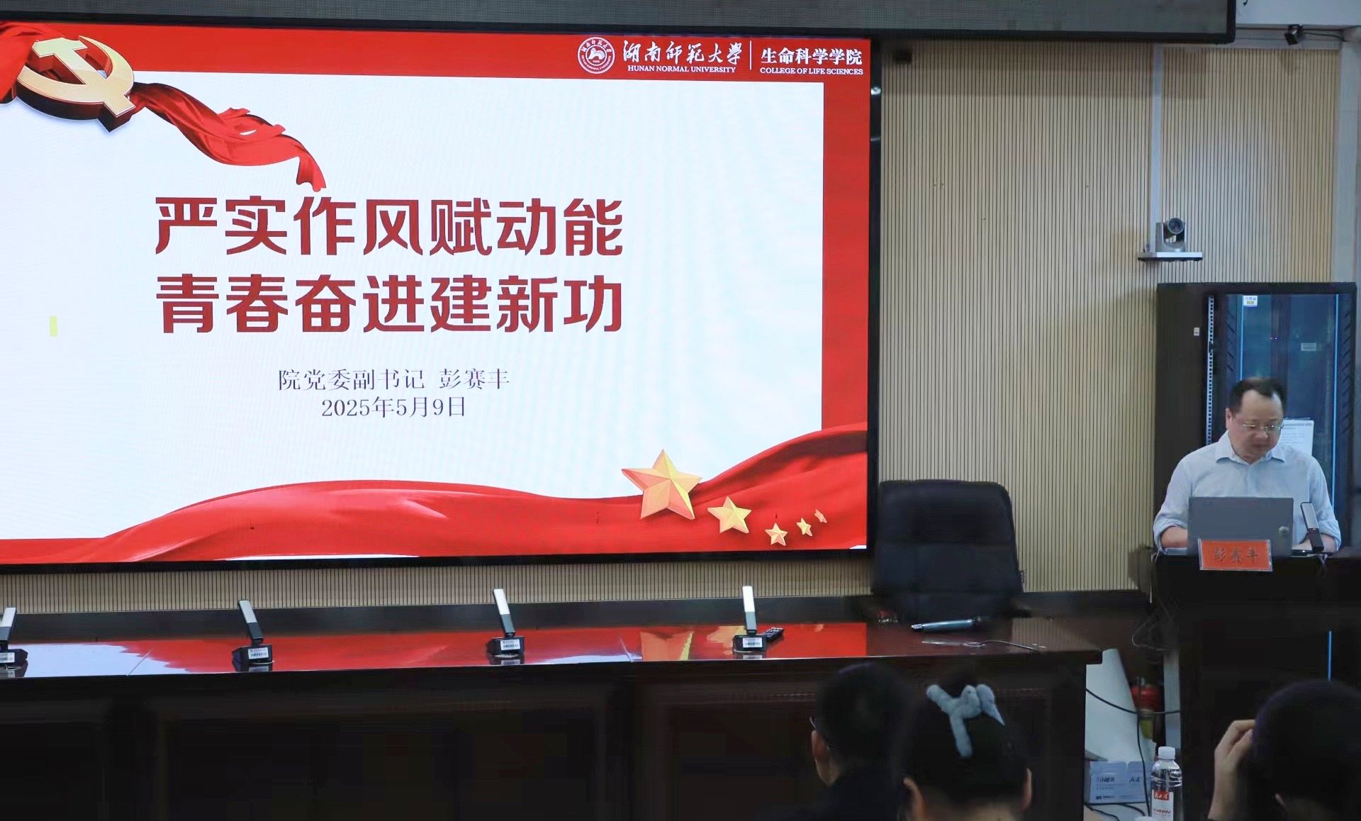 (通讯员 冯鑫 颜佳妮 吴晴)为深入贯彻落实中央八项规定精神,强化党员纪律意识与作风建设,提升党员党性修养,5月9日上午,beats365官方网站于生科院二号楼学术报告厅举办“严实作风赋动能,青春奋进建新功”主题党课。此次理论学习由本科生第一、第二、第三党支部与实验中心教工党支部联合举办。公司党委副书记彭赛丰担任主讲人,本科生第一党支部书记吴晴担任主持人。实验中心教工党支部书记刘萍,本科生第二党支部书记周冲、本科生第三党支部书记罗静伟以及实验中心教工党支部成员,全体本科生党员参与本次理论学习活动。