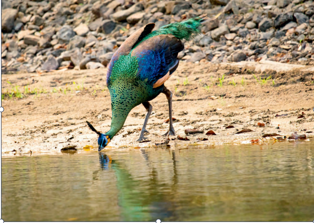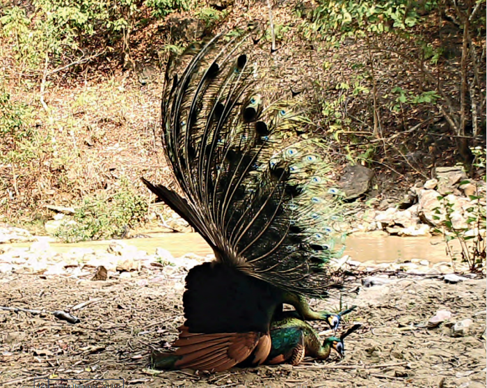 图3 绿孔雀在水源地觅食