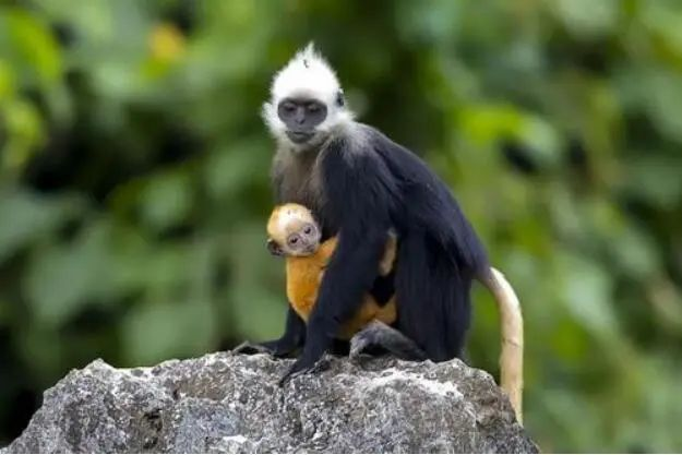 4、食性:白头叶猴顾名思义叫做叶猴,就是因为它是吃树叶的。其以植物嫩叶,枝条为食,它的食物80%-90%都是树叶。在它生活的环境里面,有各种各样树叶,每个季节有不同的偏好,喜欢吃什么树叶,就采摘一些什么样的树叶,而且采食量并不高。