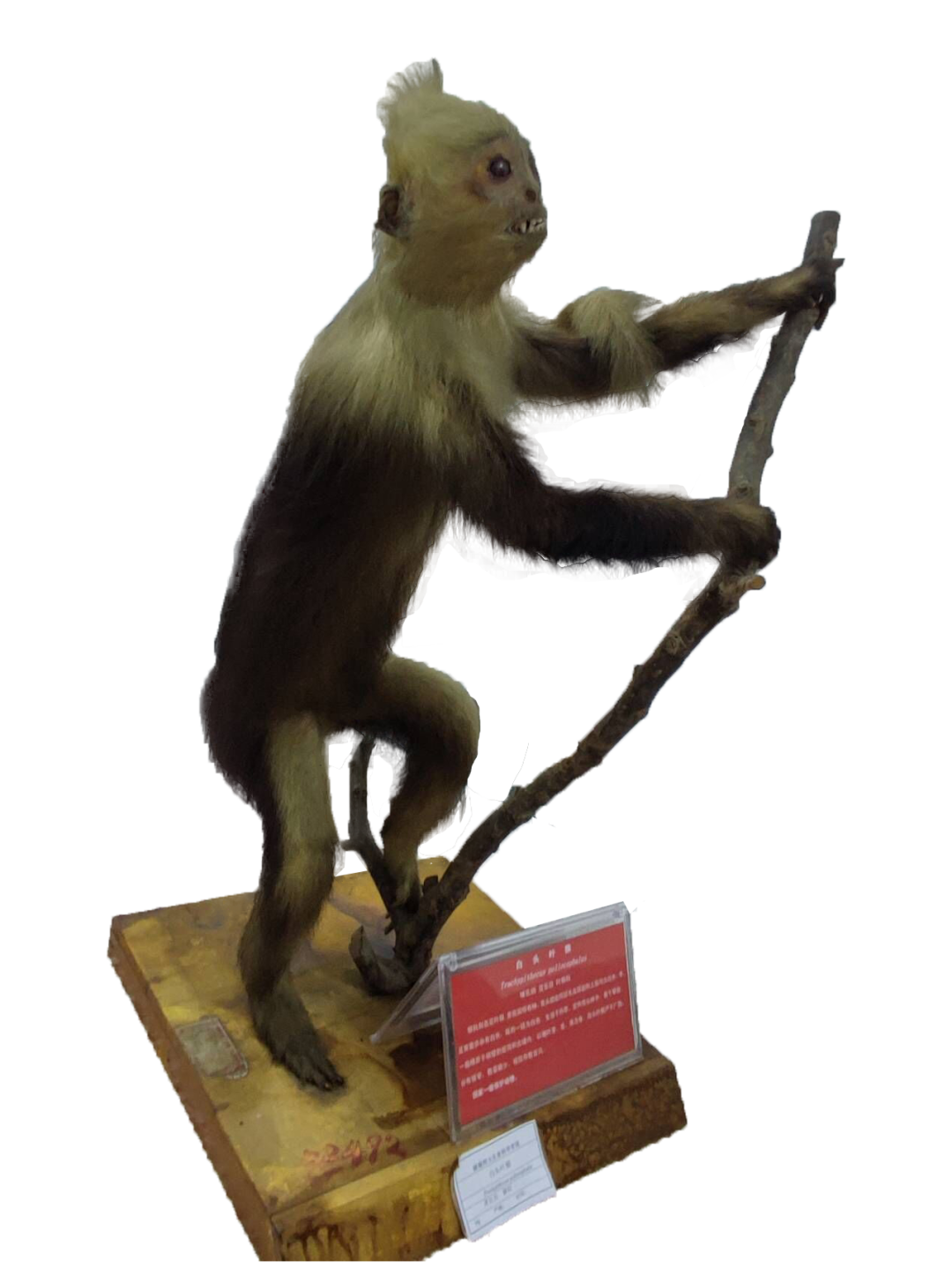 目前标本馆有一件白头叶猴标本,来自长沙动物园。此标本在八十年代由梁启燊教授和王义铣实验师制作,现存放于湖南师大动物标本馆。