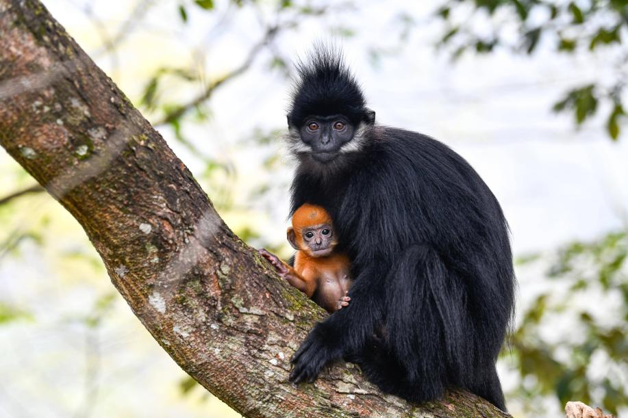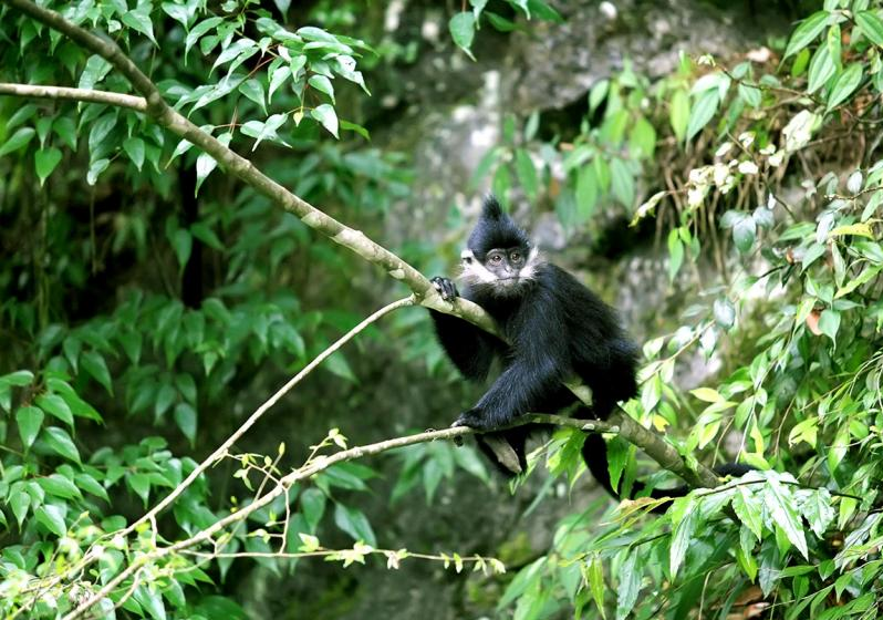 目前全球野生黑叶猴数量仅2000多只,在越南和中国的贵州、广西、重庆等地生存,其中约1500只生活在中国。