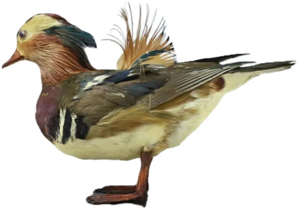 beats365官方网站动植物标本馆现存有鸳鸯标本四件,雌雄各两件,图片为雄性。