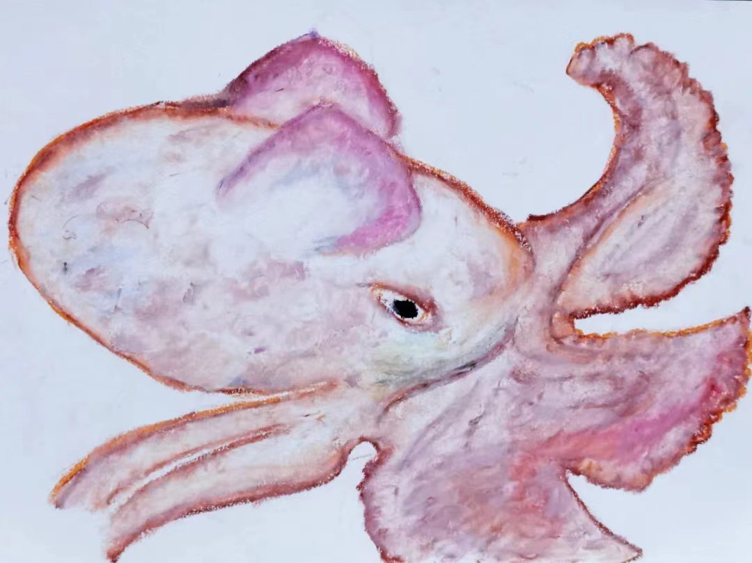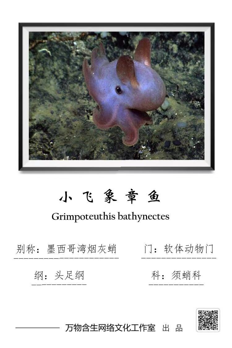 外形:小飞象章鱼体长20厘米左右。最大者体长可达6英尺,重约13磅。长有两只“耳朵”和一个长“鼻子”。因其外貌酷似迪斯尼动画片中的小飞象而得名。小飞象章鱼的“大耳朵”实际上是它们的鳍,可以帮助它们保持身体平衡,还可帮助它们游动前行。小飞象章鱼还会通过触角底部的漏斗状结构喷射水流,借助水流的推动和鳍的摆动在水里翩翩起舞