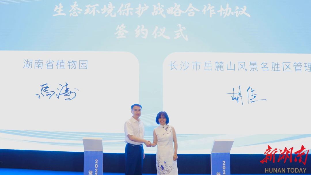 活动现场,长沙市岳麓山风景名胜区管理局与湖南省植物园签订《生态环境保护战略合作协议》,双方将基于生态行业领域优势,在资源共享、品牌共建、人才共育、产品共研、合作共赢等方面开展深度合作。湘江新区农业农村和生态环境局与长沙市生态环境保护行业协会签订《湘江新区生态环境保护志愿服务意向书》,将通过加强理论宣讲、建立健全志愿服务制度、强化生态环境社会监督等,推动生态环境志愿服务延伸到生态环境保护工作的方方面面,加快形成人人参与、共建共享的湘江新区生态环境保护工作新格局。