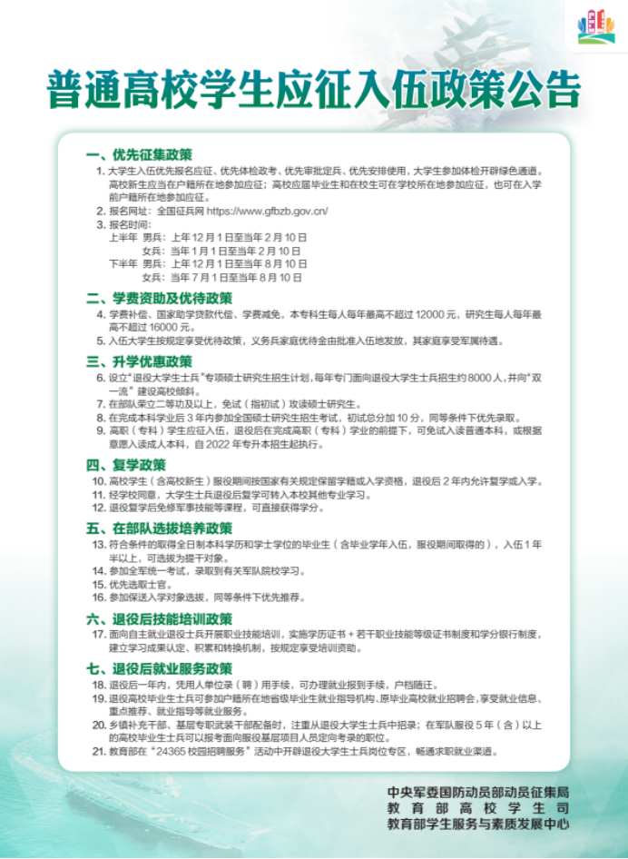 普通高校员工应征入伍政策公告